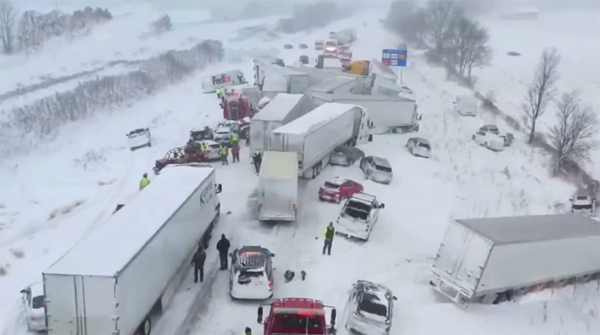 У понеділок в американському штаті Мічиган через сильний снігопад понад 100 автівок потрапили в дорожньо-транспортну пригоду.