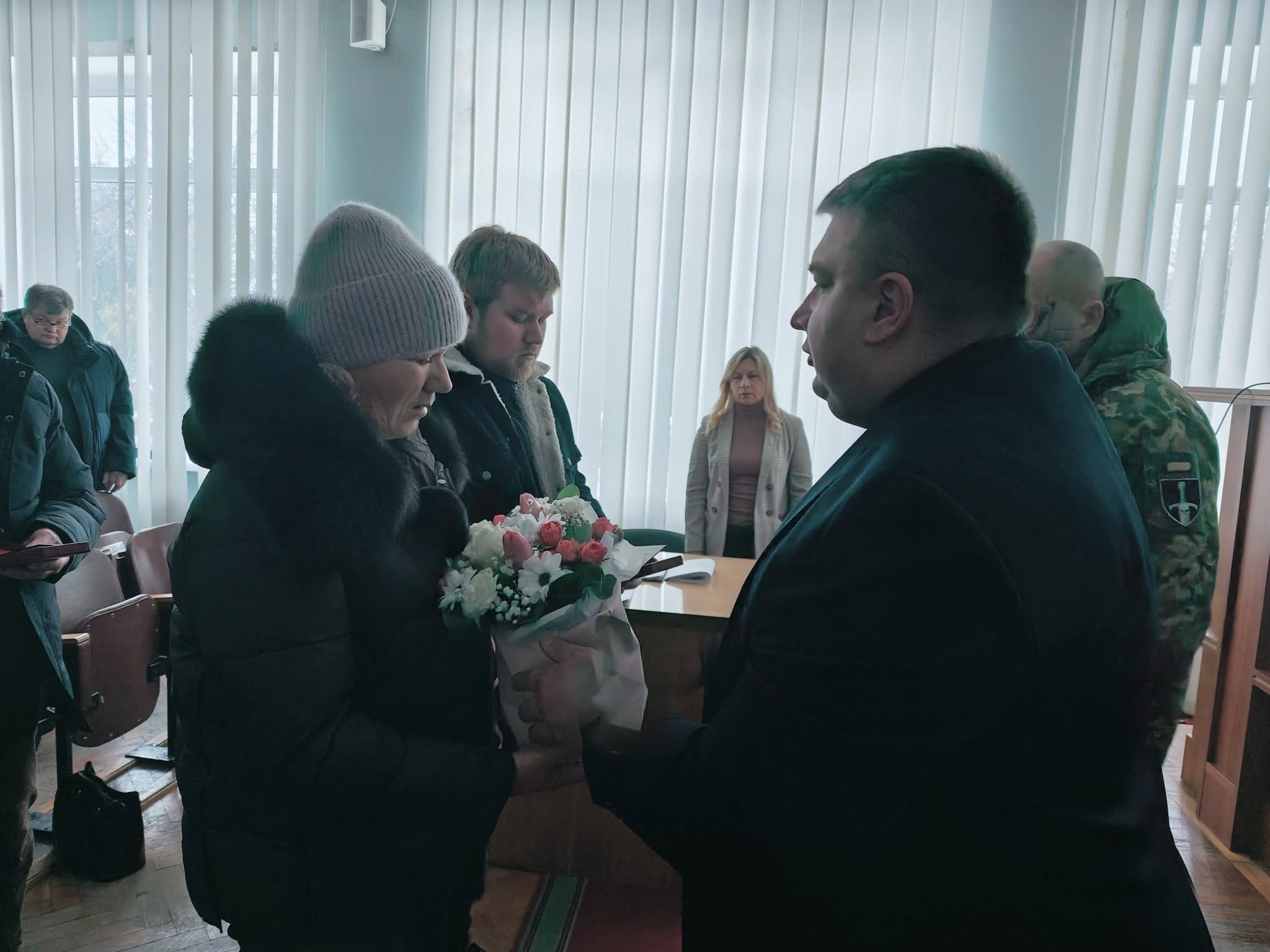 Перед початком пленарного засідання 67-ї позачергової сесії міської ради Рожищенський міський голова В’ячеслав Поліщук та представник Другого відділу Луцького районного ТЦК та СП вручили державні нагороди родинам Героїв російсько-української війни.