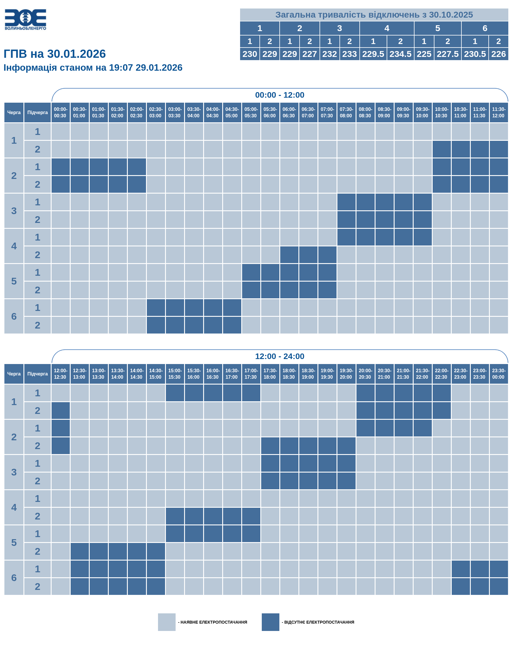Час вимкнення та відновлення електропостачання може відрізнятись від заявленого у графіку на 20-30 хвилин. Таке відхилення пов’язане із технологічним процесом перемикання черг службами «Волиньобленерго».