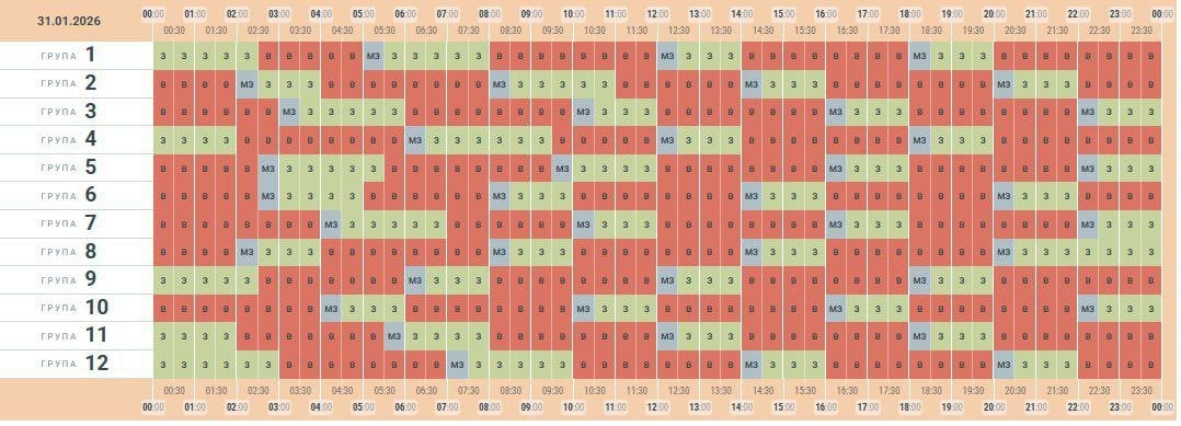 Група 6.1: 00:00 — 06:30 / 10:00 — 18:30 / 20:30 — 24:00
