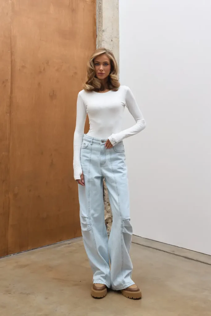 Літні джинси відрізняються від демісезонних моделей насамперед матеріалом. Twice використовує легший денім, який краще пропускає повітря та не створює дискомфорту у спеку. Найчастіше це світлі відтінки — блакитний, білий або світло-сірий, які не лише практичні, а й відповідають літнім трендам.