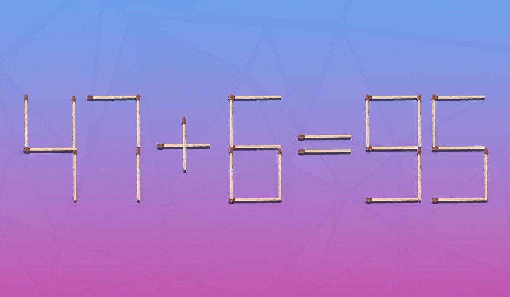 Отже, ми створили зображення, де сірниками викладено рівняння 47+6=95. Очевидно, що щось тут не так, адже відповідь мала би бути 53.