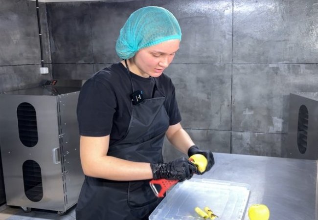 Чоловік більше займається організаційними питаннями — закупкою товарів, продажами, рахунками, а Мар’яна — головна на виробництві — чистить яблука, нарізає, робить усі технічні процеси.