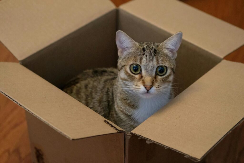 Крім того, коробки можуть стати безпечним місцем, де кіт може сховатися, коли її оточення змінюється.