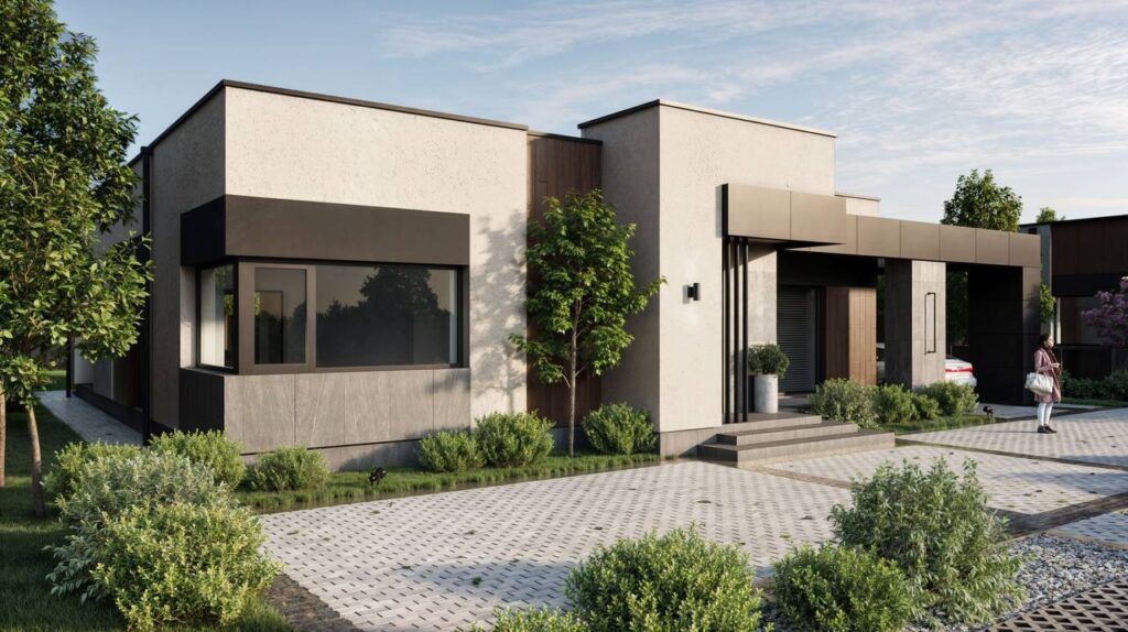 Візуалізація хай-тек будинку біля лісу від будівельної компанії «Сімейна Фортеця»