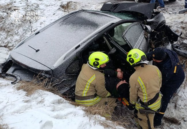 Вранці 15 лютого на лінію 101 надійшло повідомлення про необхідність надання допомоги людині під час дорожньо-транспортної пригоди поблизу селища Голоби Ковельського району — в автівці деформованими конструкціями затиснуло пасажира.