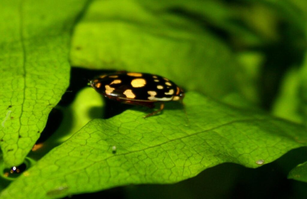 Цей жук має цікавий вигляд / фото ВікіпедіяІснує думка, що біфокальні окуляри були винайдені кілька століть тому Бенджаміном Франкліном. Однак личинка жука-водоплавця Thermonectus marmoratus, привабливого мешканця південної Америки та Мексики, може претендувати на більш ранній винахід, адже це єдина відома тварина, яка має природний біфокальний зір, пише Discover Wildlife.