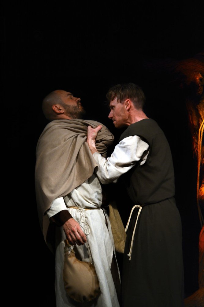 Це філософська драма-сповідь, у центрі якої – внутрішній конфлікт людини, що зробила фатальний вибір. Через напружений діалог і мовчання постає тема зради, каяття та відповідальності за власні вчинки. У виставі йдеться не про біблійну історію, а про вічну боротьбу совісті й страху в людській душі.