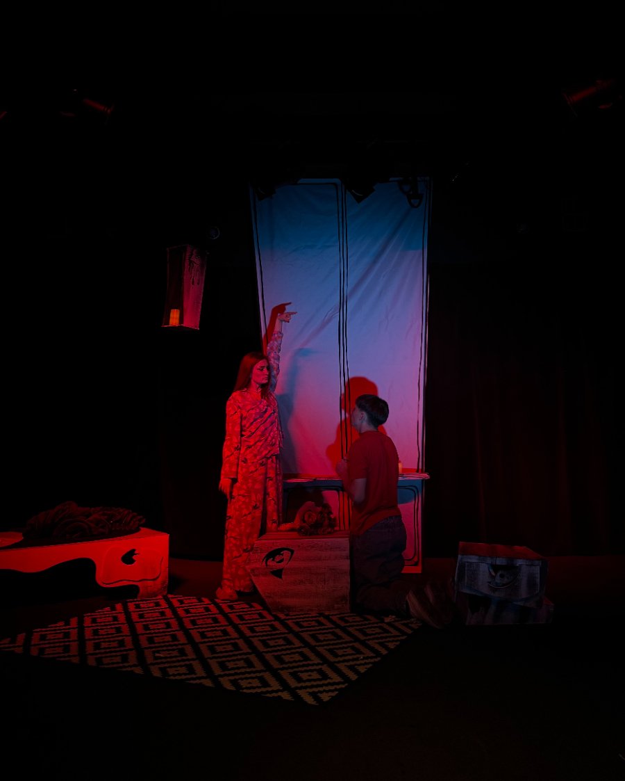 Герої опиняються у дивному просторі між реальністю та уявою, де звичні ситуації набувають несподіваних форм. Іронія, гротеск і тонка психологічна гра створюють комедію, що смішить і водночас спонукає впізнати себе. Це вистава про дорослішання, яке ніколи не минає безслідно.