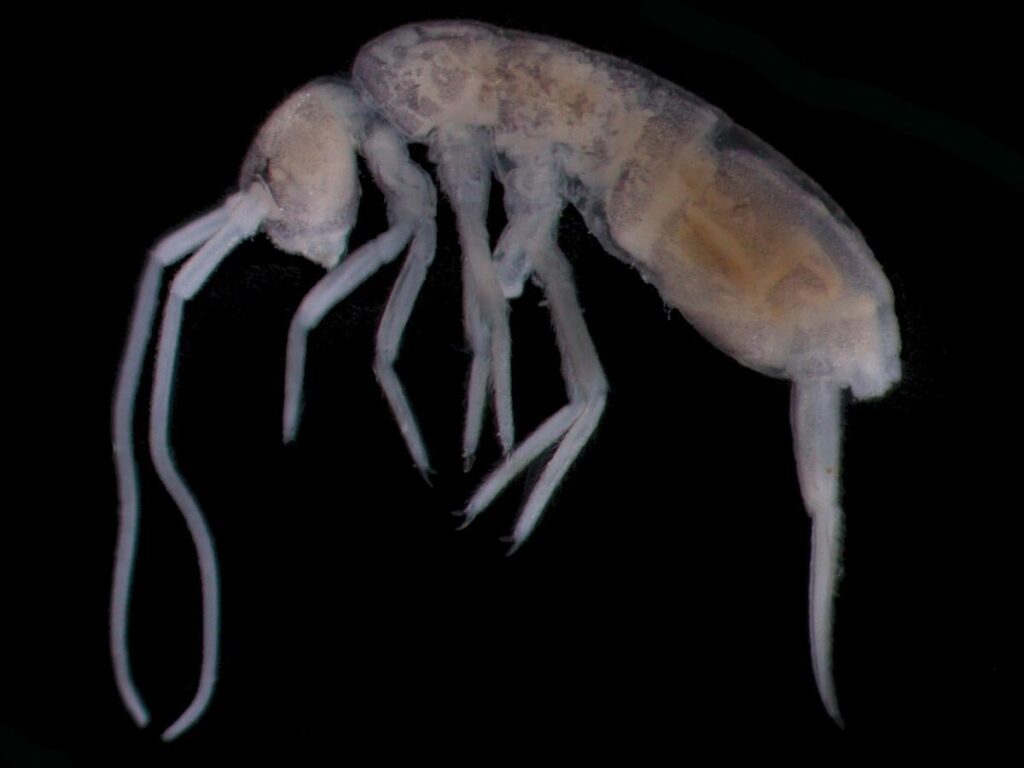 “У відповідь на ці умови жодна з цих тварин не має очей і вони позбавлені пігментації… Крім того, у одного з видів розвинувся хеморецептор – свого роду хімічна параболічна антена, – який дозволяє йому пересуватися в такому складному середовищі. Вони харчуються грибами, які на них ростуть, сприяючи їх розкладанню і беручи участь в мережі стабільних спільнот членистоногих, що існують в печерах”.