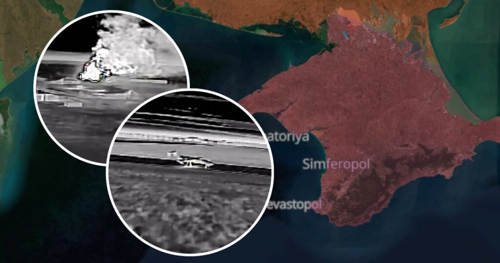 СБУ повідомила, що дрони вразили виробничі приміщення на аеродромі в Євпаторії та військову базу в Пушкіному, неподалік від аеропорту Джанкоя. За попередніми даними, знищено два бойові автомобілі, оснащені зенітним ракетним комплексом «Панцир-С2», вартість яких оцінюється приблизно у 20 мільйонів доларів, а також іранський безпілотник Mohajer-6, що перебував на летовищі.