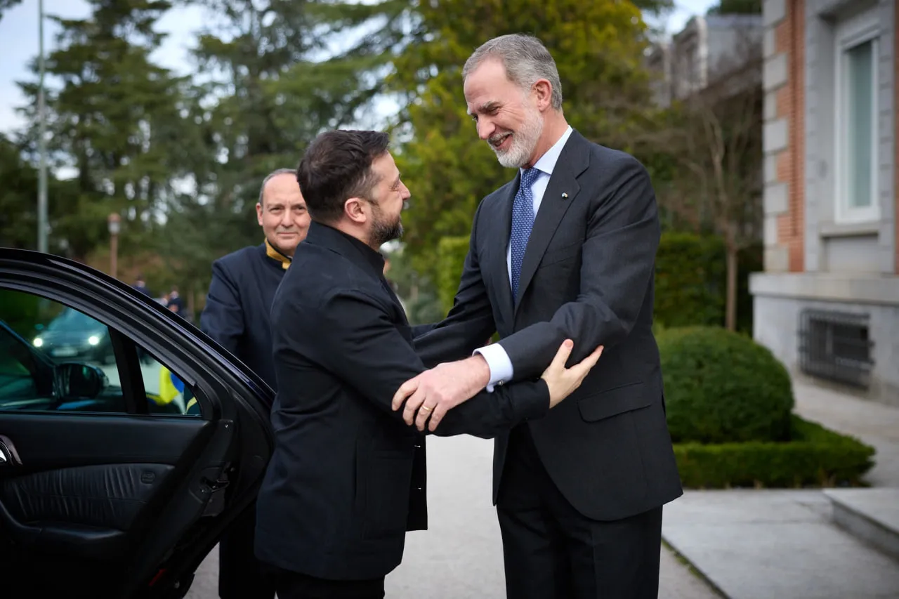 Президент України Володимир Зеленський зустрівся з королем Іспанії Феліпе VI у королівській резиденції Сарсуела. Під час зустрічі обговорювалися питання двосторонньої співпраці та підтримки України.