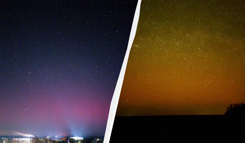 Зокрема, 20 березня рожеве світіння помітили в небі Київської області, а 22-23 березня сяйво було видно в Полтавській області. Відповідне відео в соцмережах опублікував українець Віталій Вішталюк. На кадрах видно нічне небо, неяскраве полярне сяйво та метеори, що пронизують небосхил.