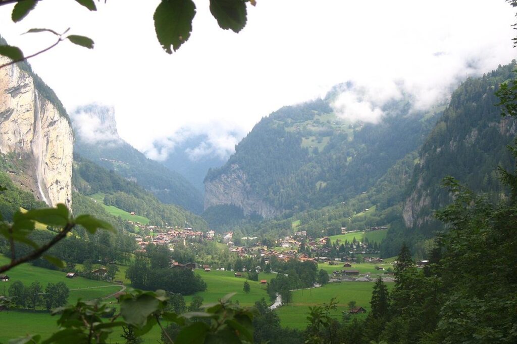 Назва місцевості – Лаутербруннен – перекладається як “гучні джерела”. І це повністю відповідає реальності: у вузькій альпійській долині налічується понад 70 водоспадів, шум яких чути здалеку.