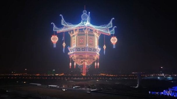 У небі з’являлися складні тривимірні фігури — традиційні китайські ліхтарі, міські пейзажі та інші динамічні композиції. Попри те, що близько 25 дронів не змогли піднятися, решта забезпечила новий рекорд Гіннеса за кількістю апаратів, які одночасно перебували під керуванням.