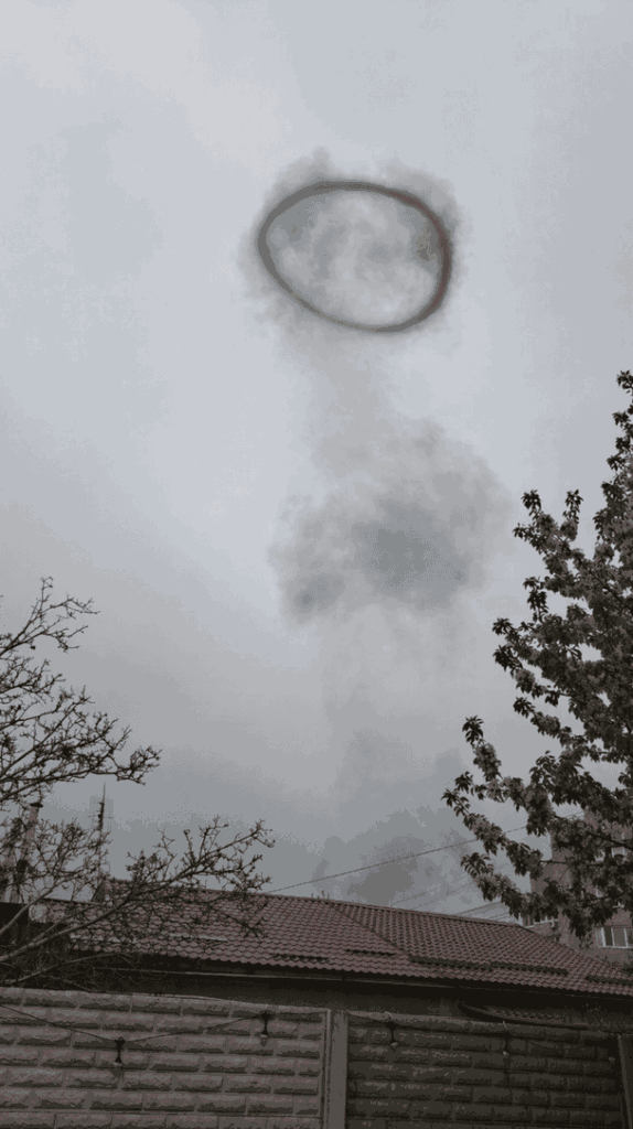 Кільце диму в небі після вибухів у Запоріжжі 22 квітня / © із соцмереж