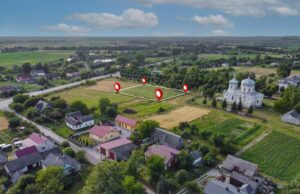 Зручний доїзд з траси через алею, викладеною бруківкою. Межує з територією церкви.