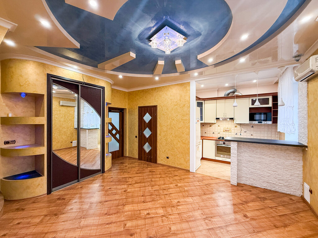 Високі підвісні декоративні стелі з багаторівневим освітленням.